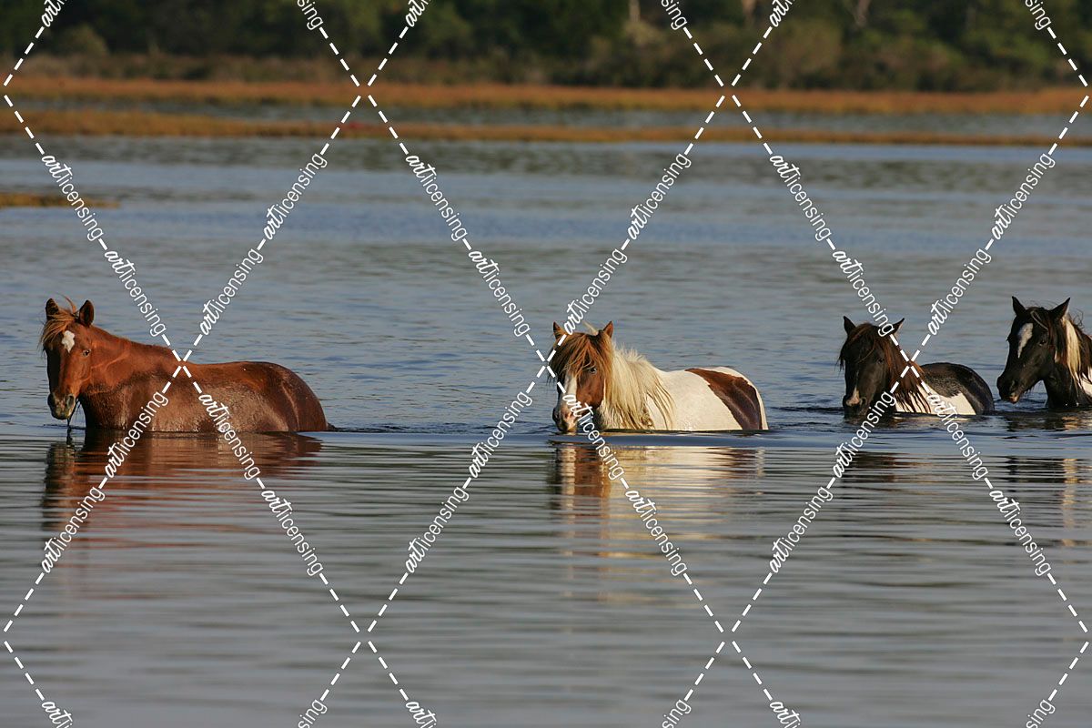 MD3P8202 Chincoteague Ponies In Water, Virginia, USA 2008