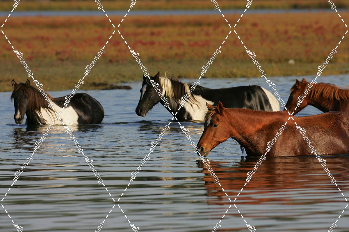 MD3P8219 Chincoteague Ponies In Water, Virginia, USA 2008