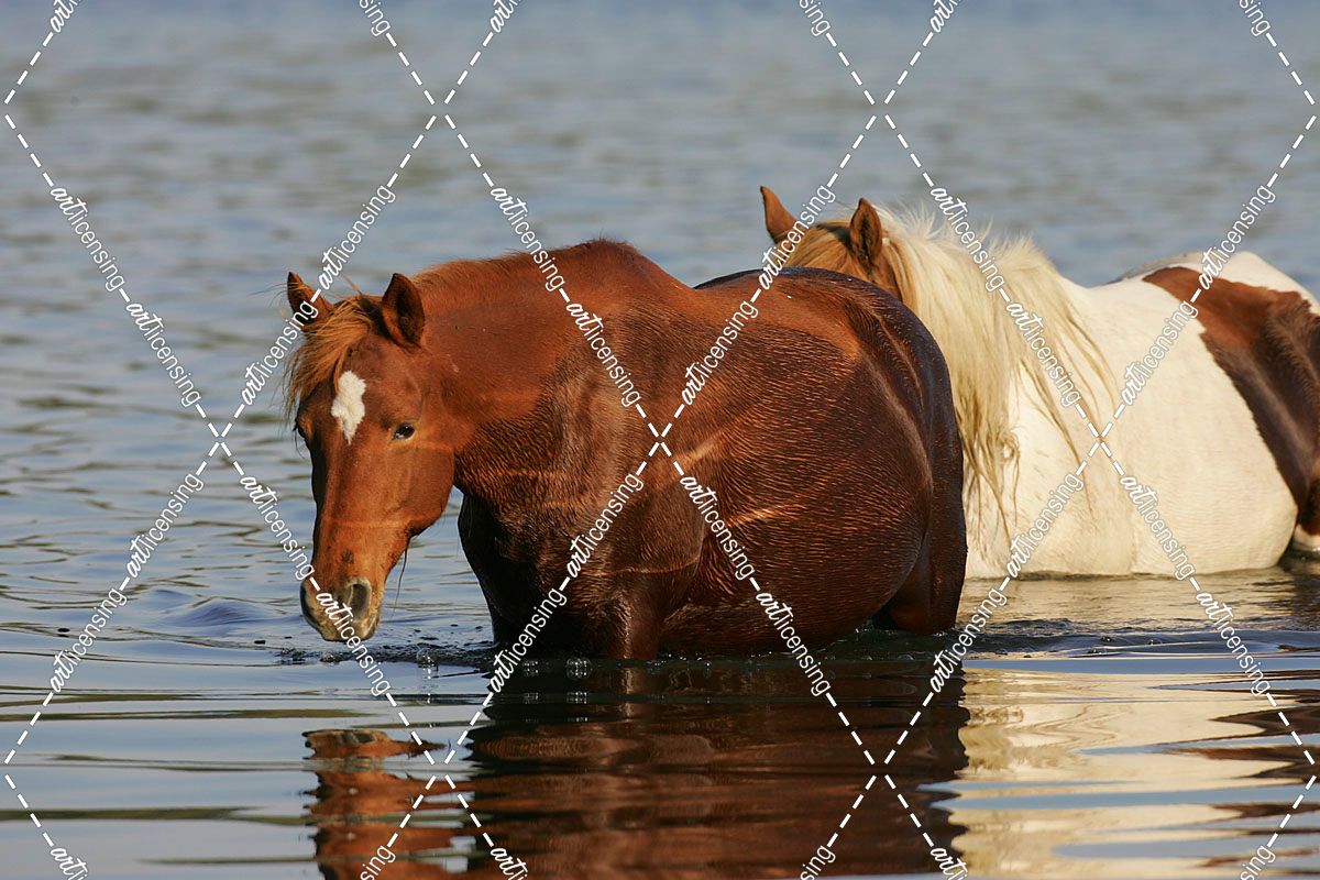 MD3P8254 Chincoteague Ponies In Water, Virginia, USA 2008
