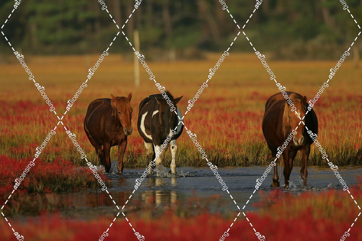 MD3P8299 Chincoteague Ponies In Water, Virginia, USA  2008