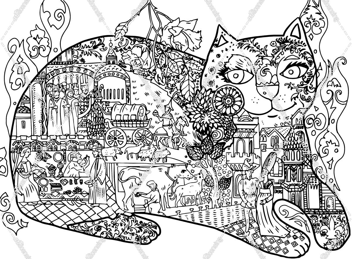 Medieval Cat Line Art