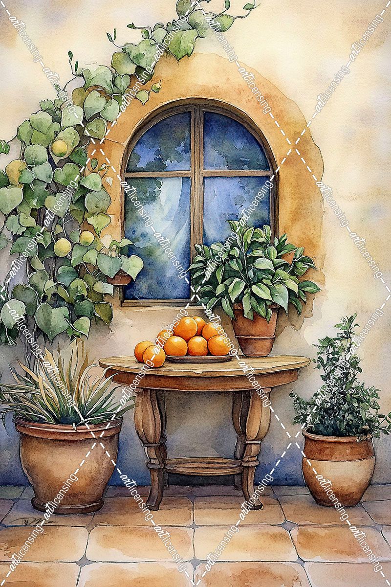 Mediterranean Patio With Orange Trees