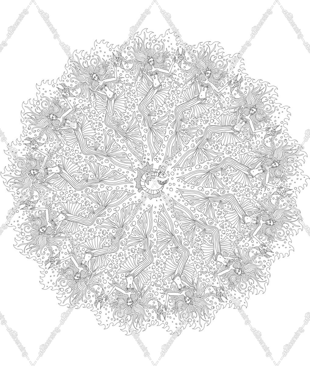Mermaid Mandala Black And White