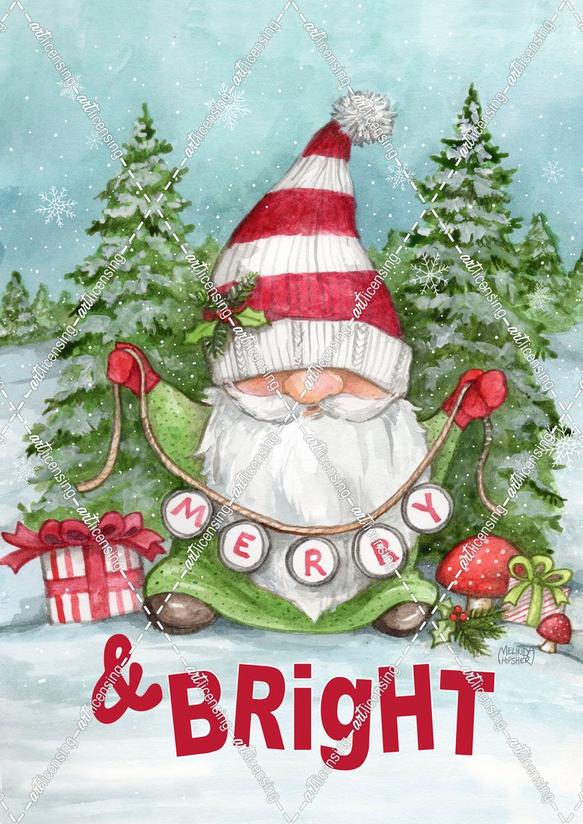 Merry And Bright Christmas Gnome In Snow