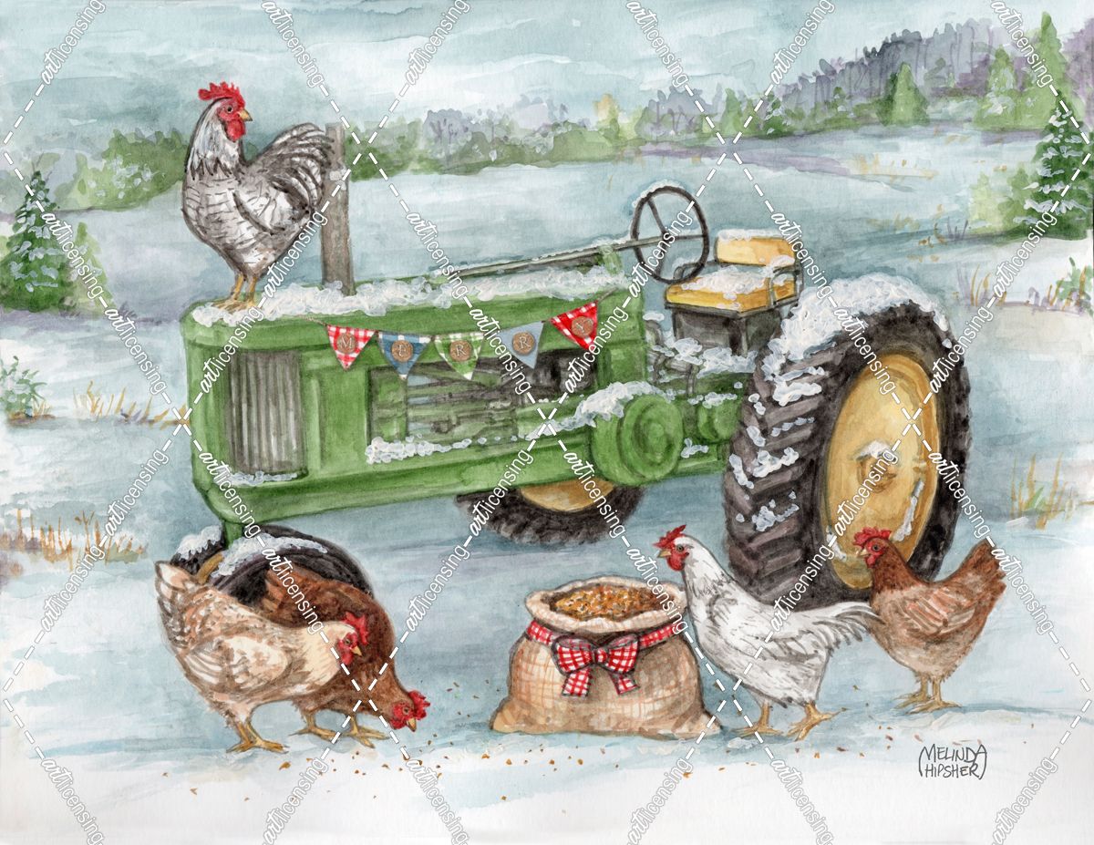 Merry Chickens And Tractor Winter