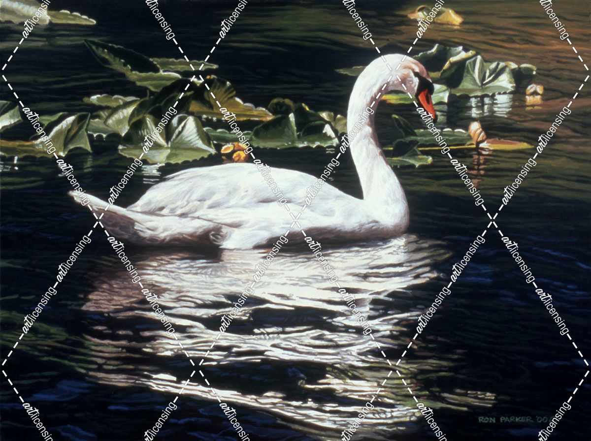 Mute Swan And Lily Pads
