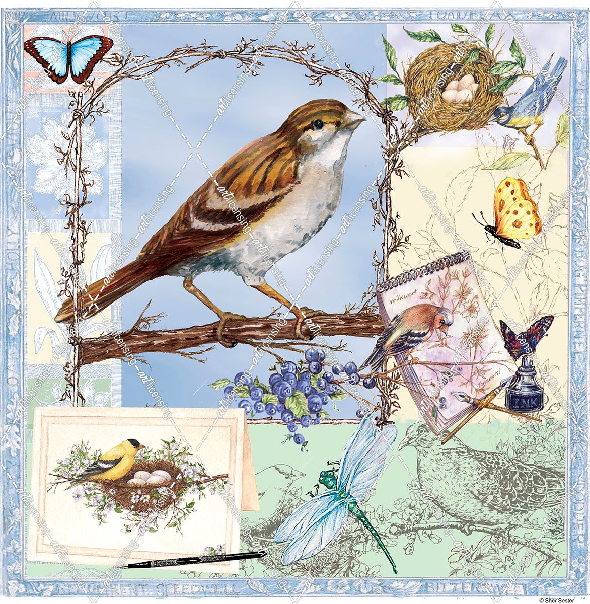 Natural Bliss Birds-Blue18X18
