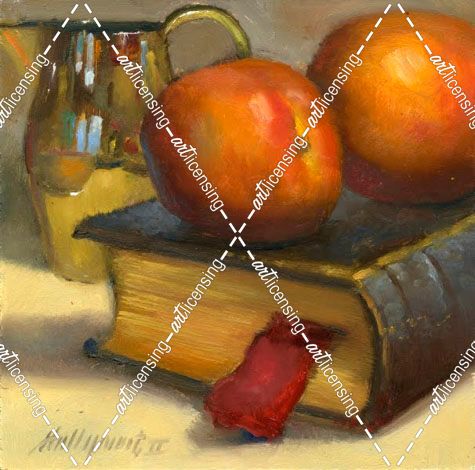 Nectarines with Silver Creamer and Vintage Leather Book
