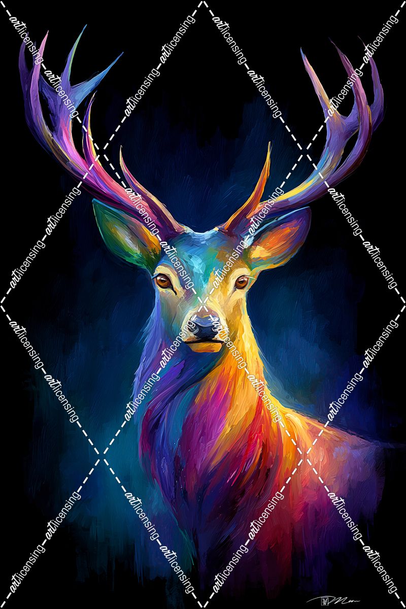 Neon Rainbow Deer On A Black Background