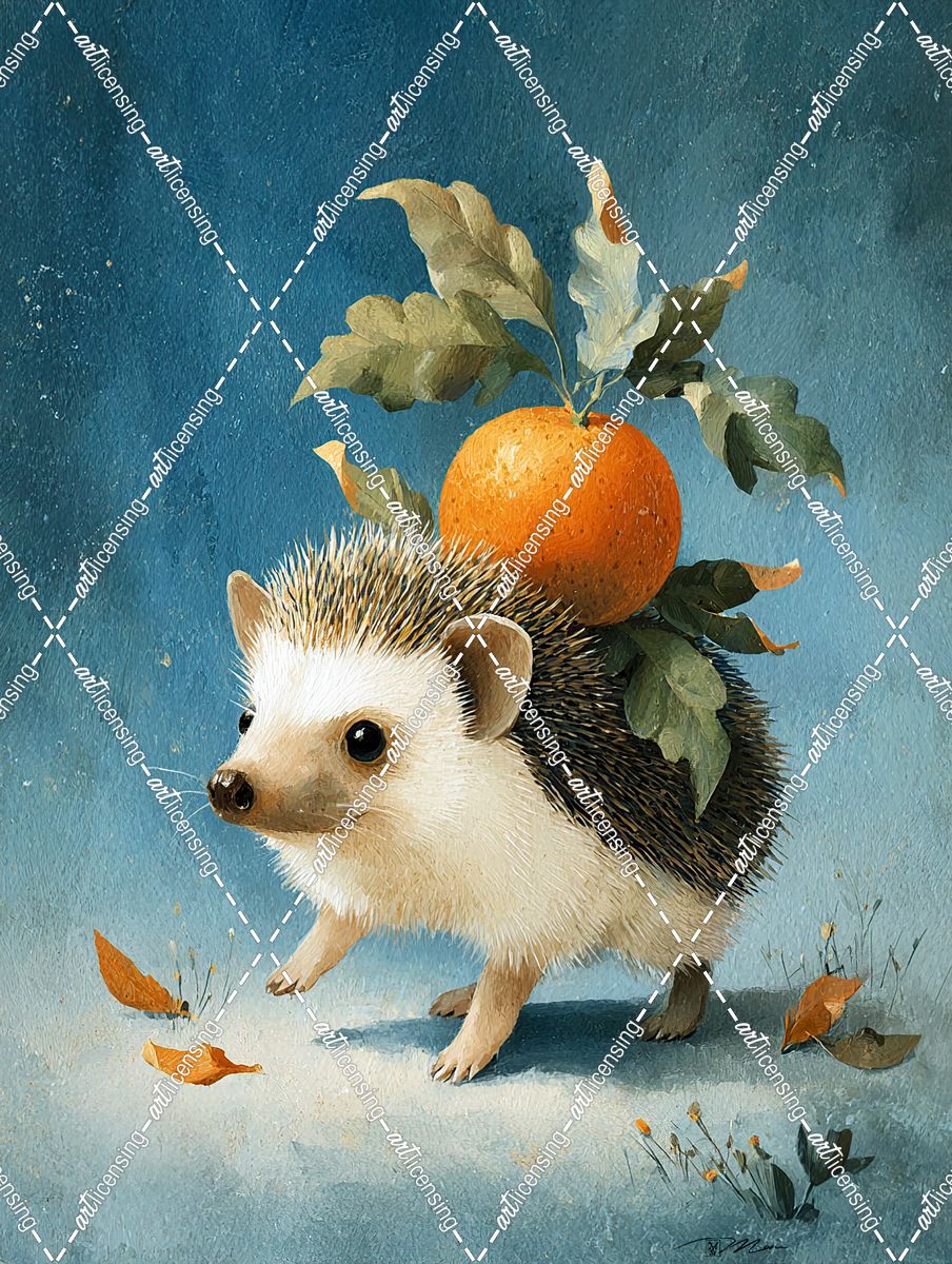 Nice Hedgehog With An Apple On His Head
