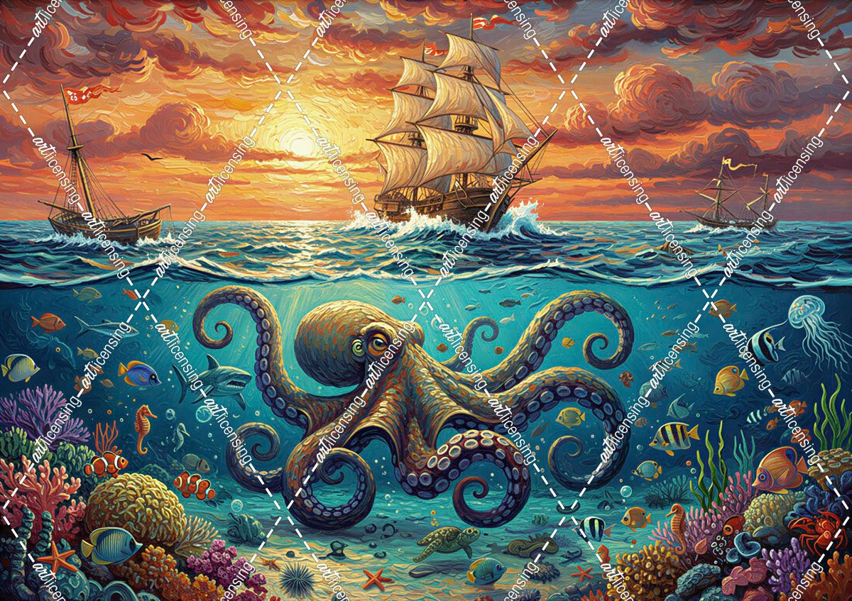 Ocean Sunset Octopus