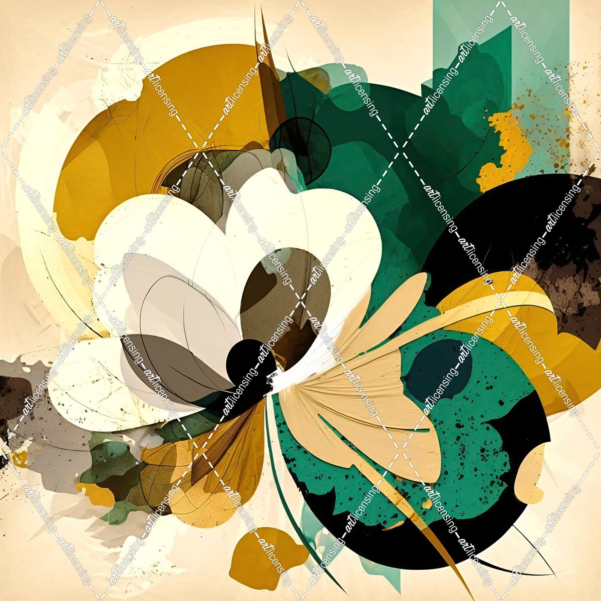 Oil Painting Expressive Flowers Gold 9