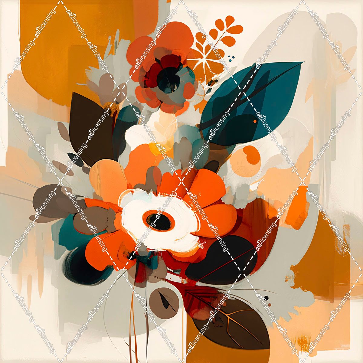 Oil Painting Expressive Flowers Orange 9