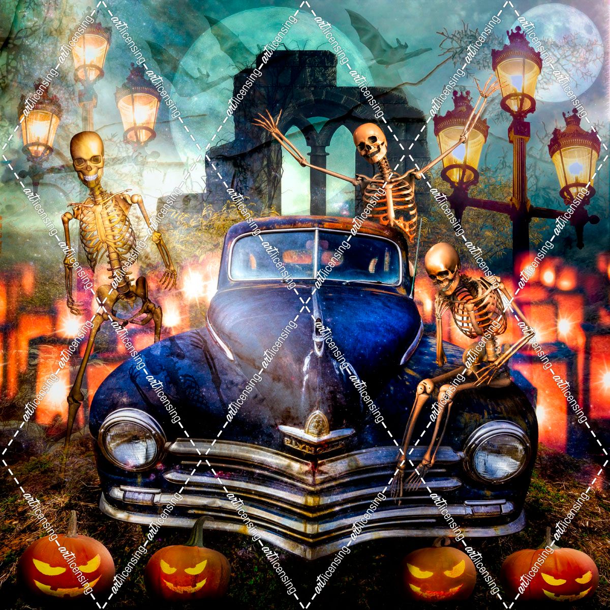 Old Plymouth With the Halloween Skeletons