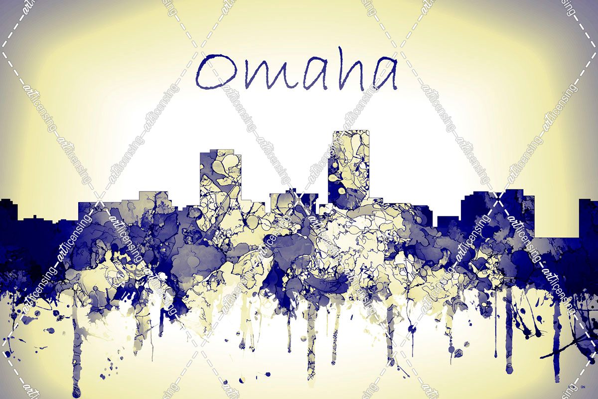 Omaha Nebraska Skyline-Harsh Blue Yellow