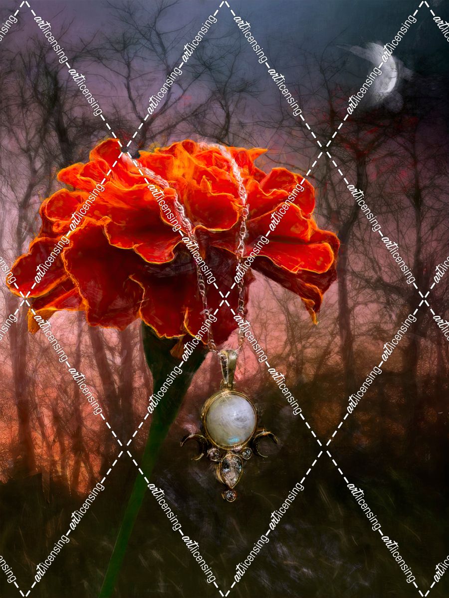 Opal Moon Pendant On A Red Marigold