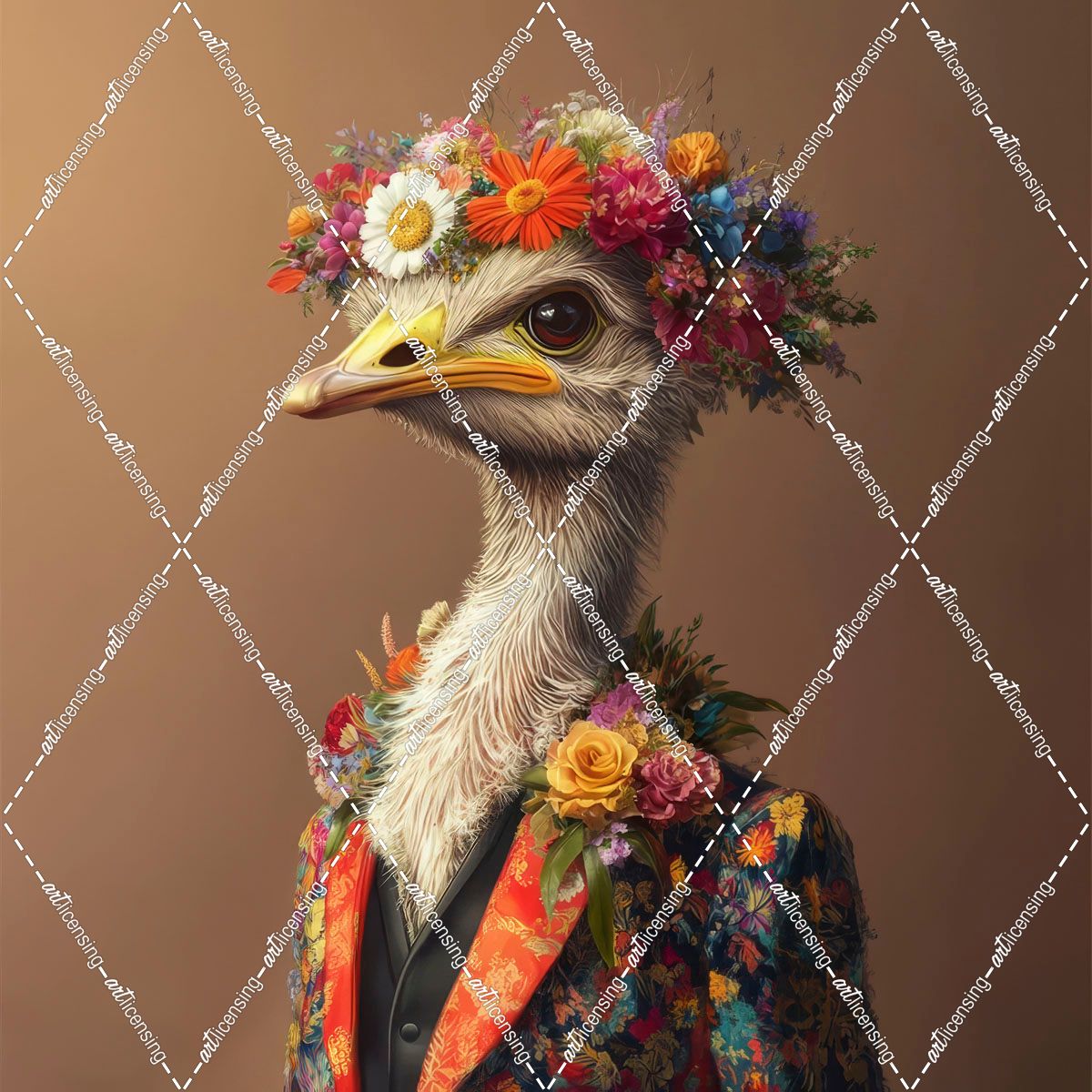 Ostrich In A Floral Suit