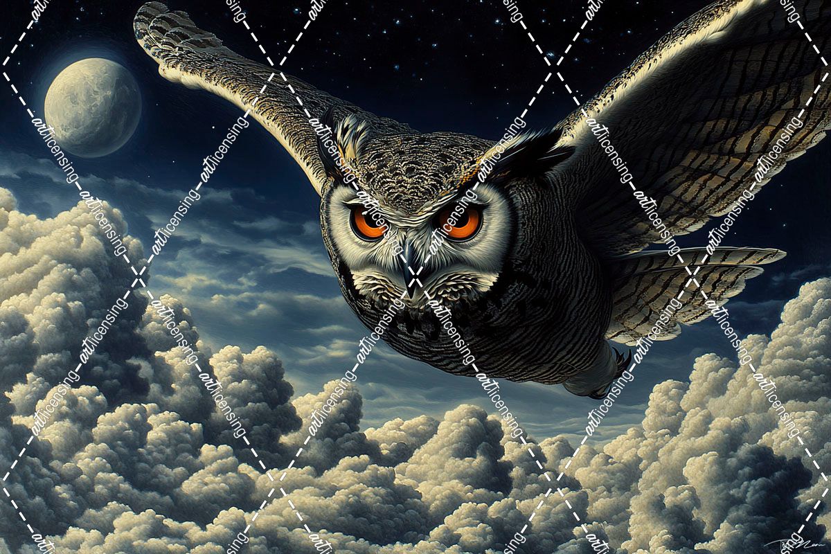 Owl Flying Over The Clouds