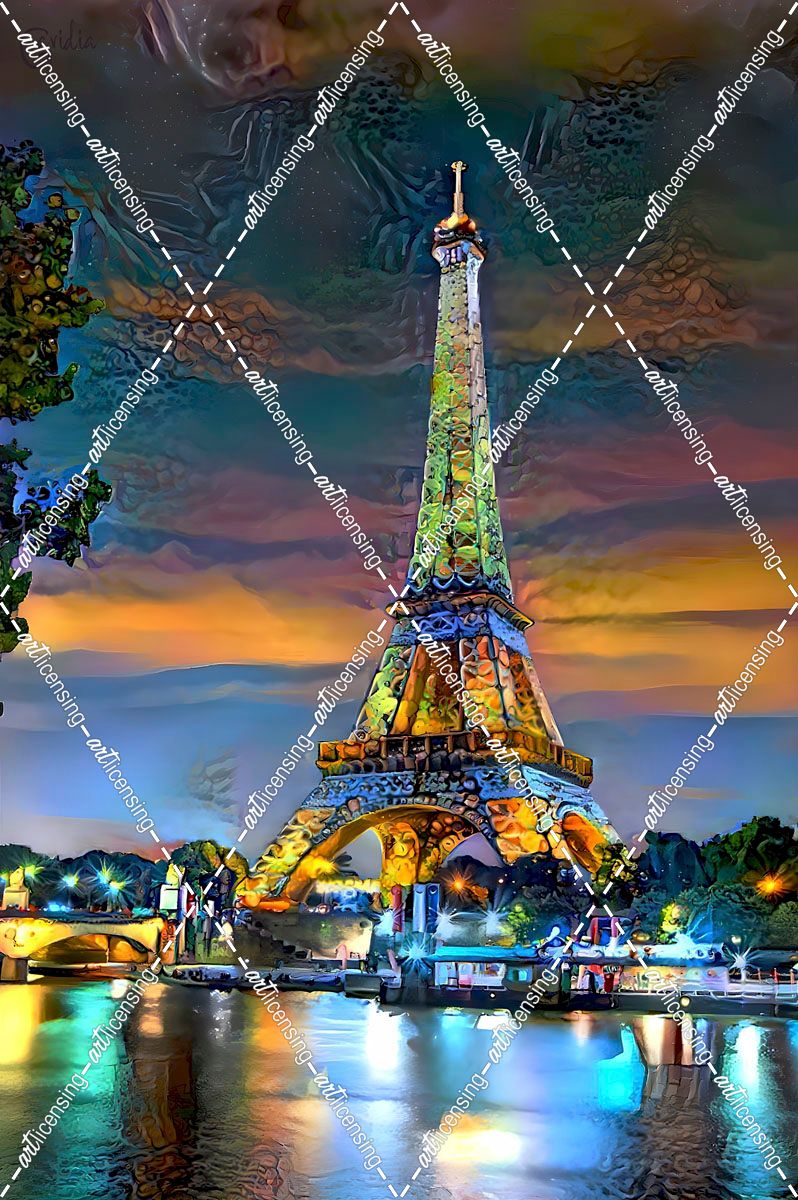 Paris France Eiffel Tower at sunset