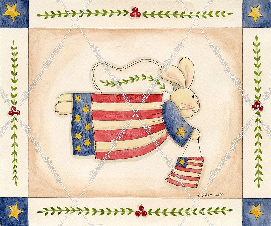Patriotic Bunny Angel With Flag