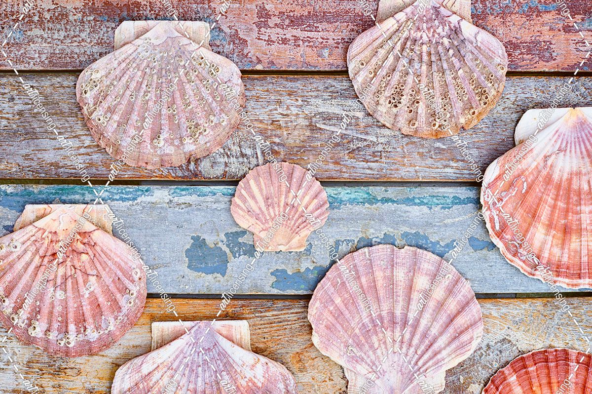 Pecten Shells on Planks