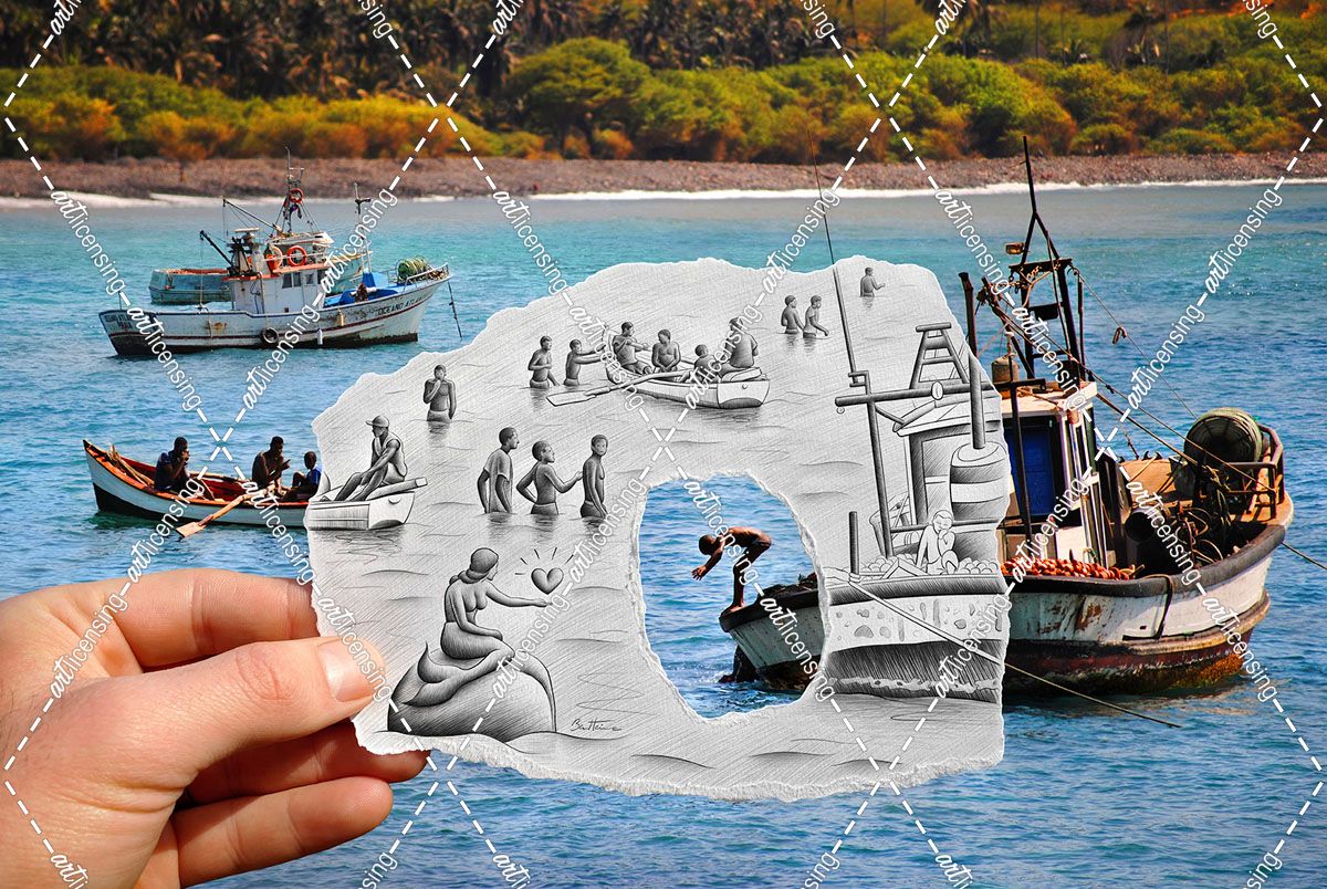 Pencil vs Camera – Boats and Swimmers
