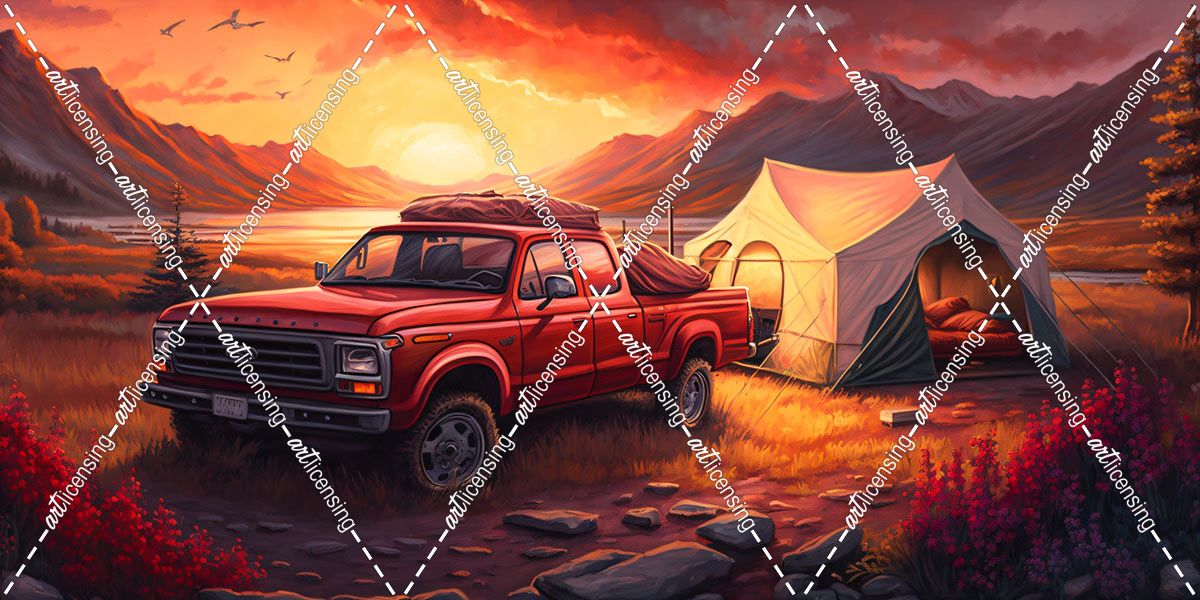 Pickup Truck And Tent At The Campsite 10