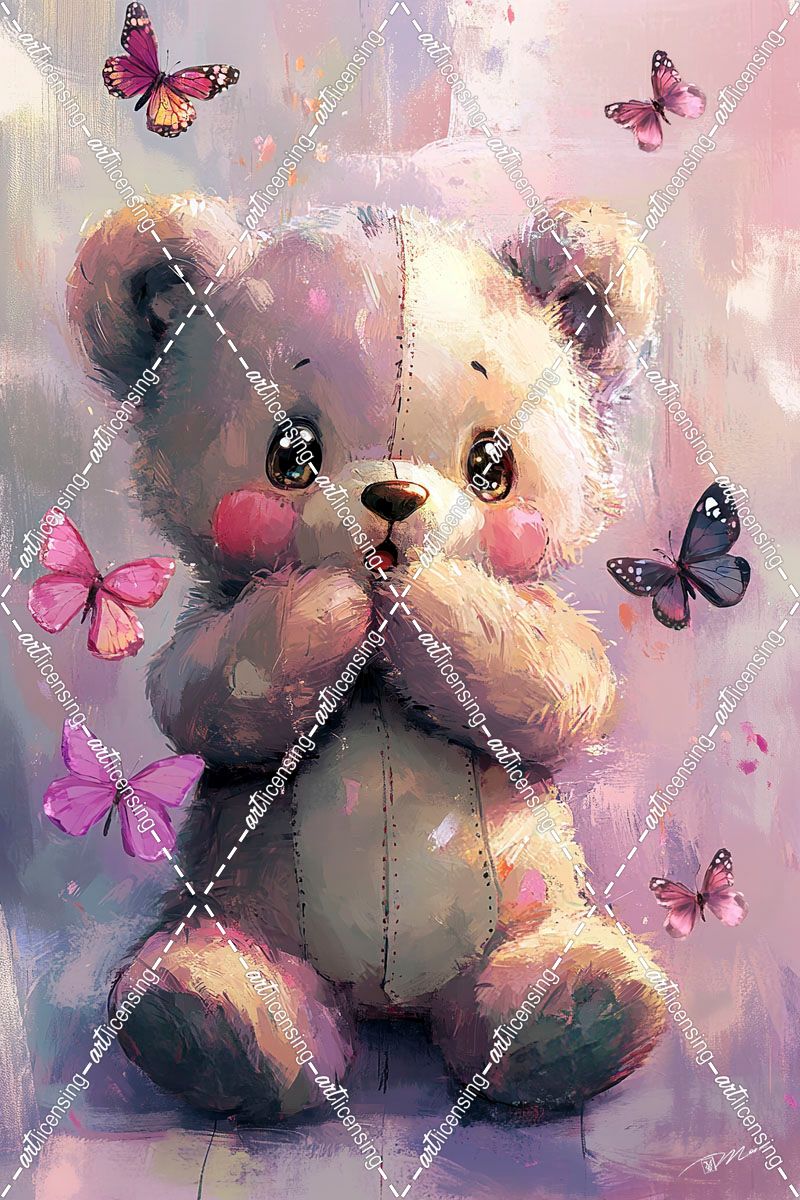 Pink Bear With Butterflies
