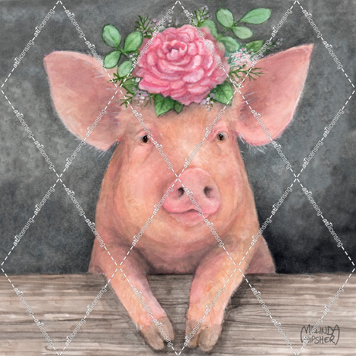 Pink Pig With Peony Crown