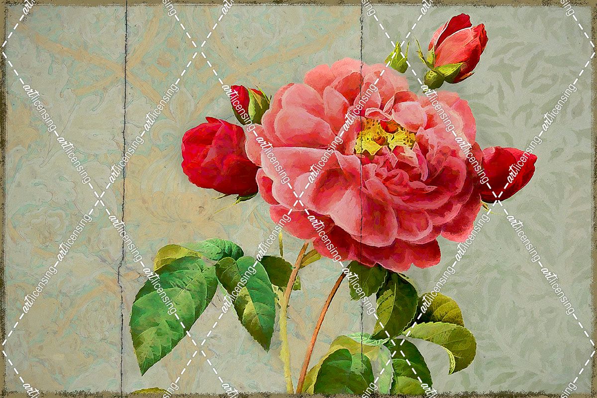 Pink Rose Painted on Wooden Panel