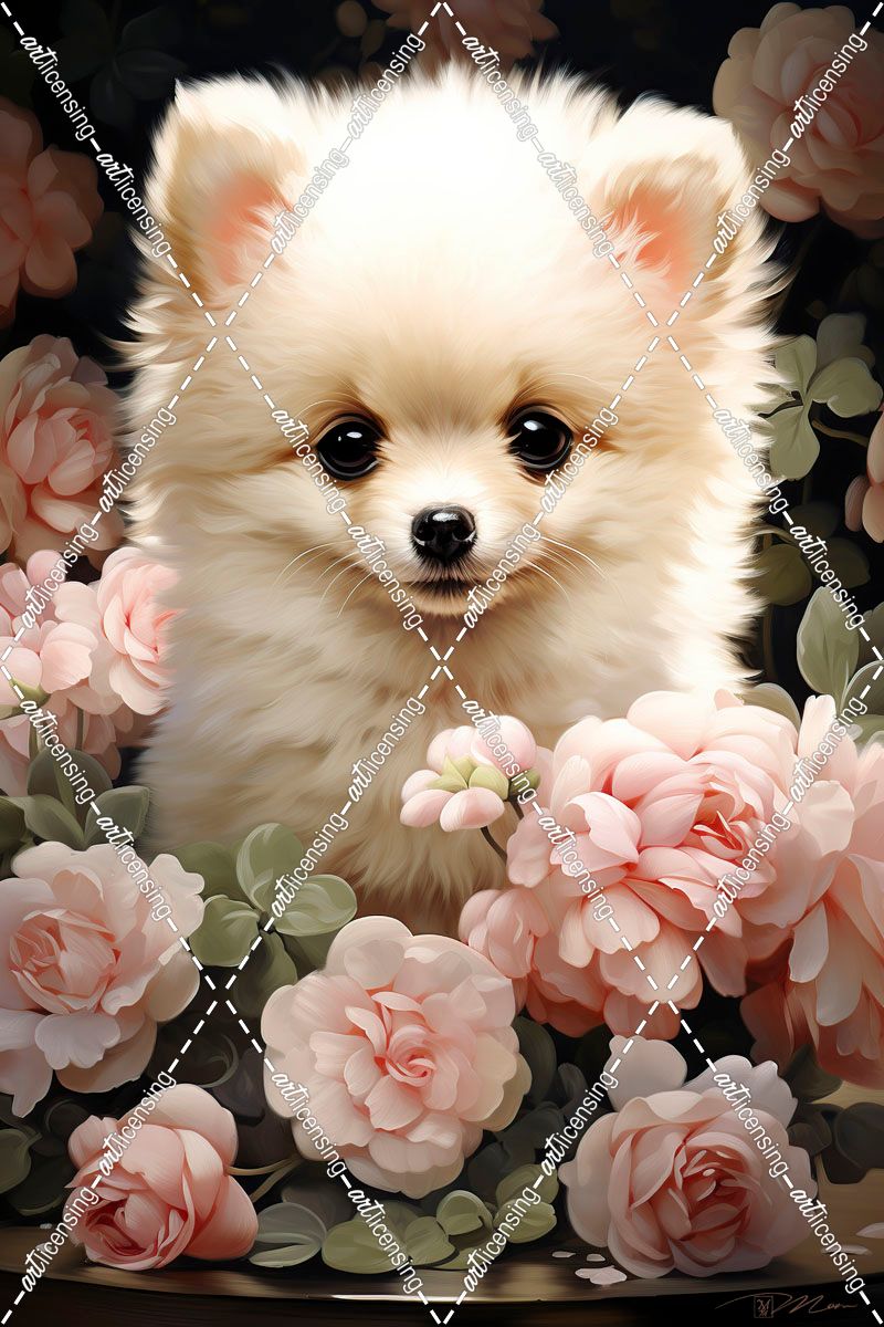 Pomeranian Among The Roses