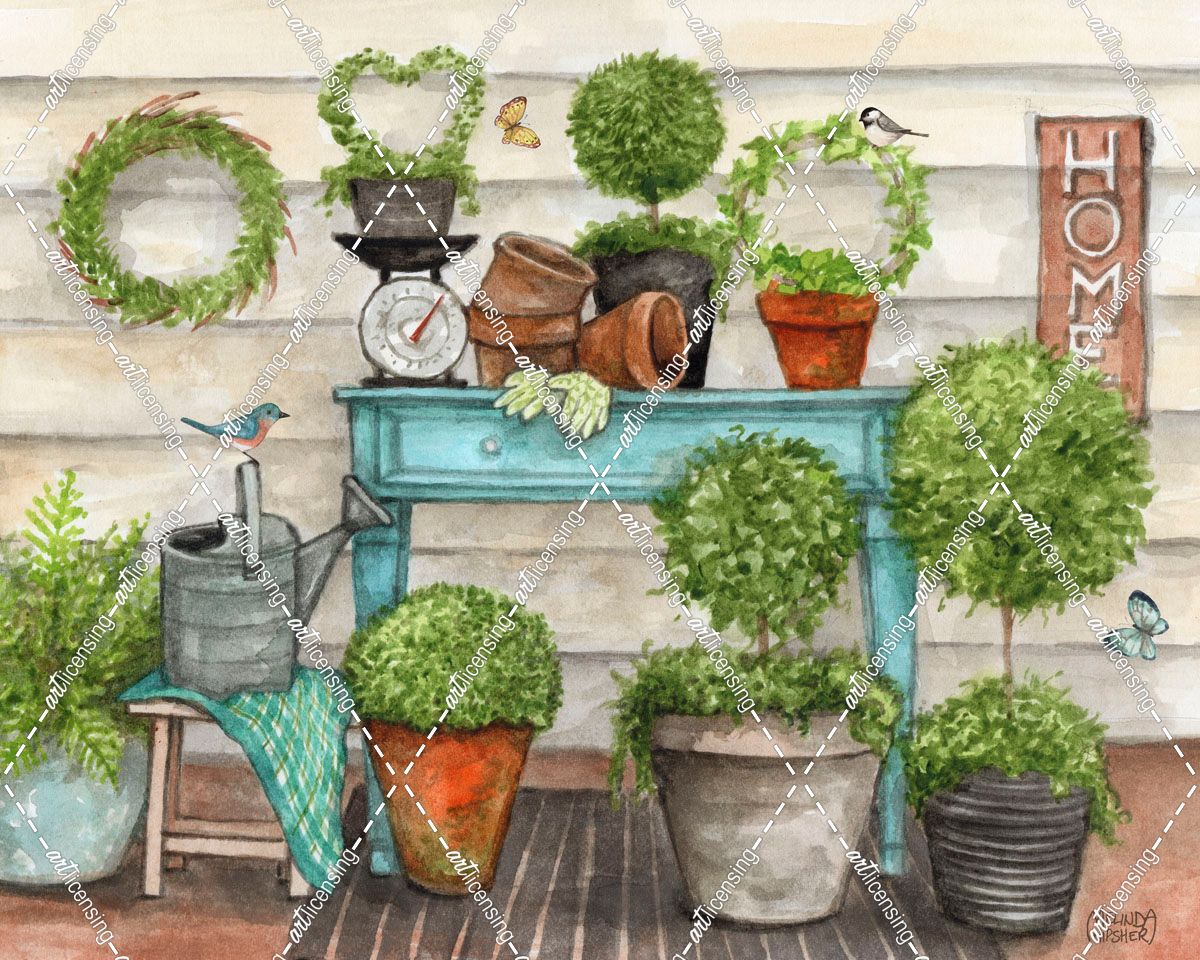 Potted Plants With Birds and Butterflies