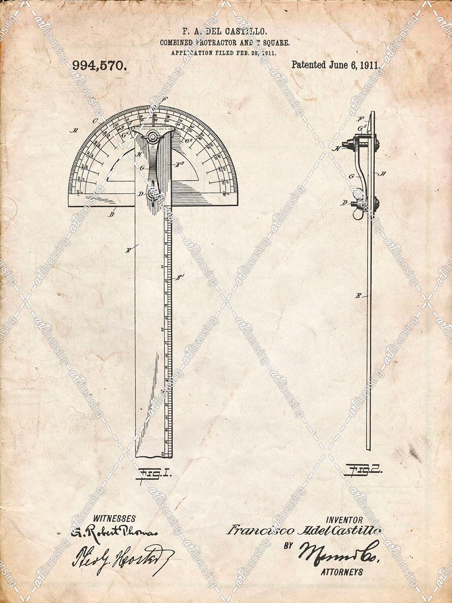 PP1002-Vintage Parchment Protractor T-Square Patent Poster