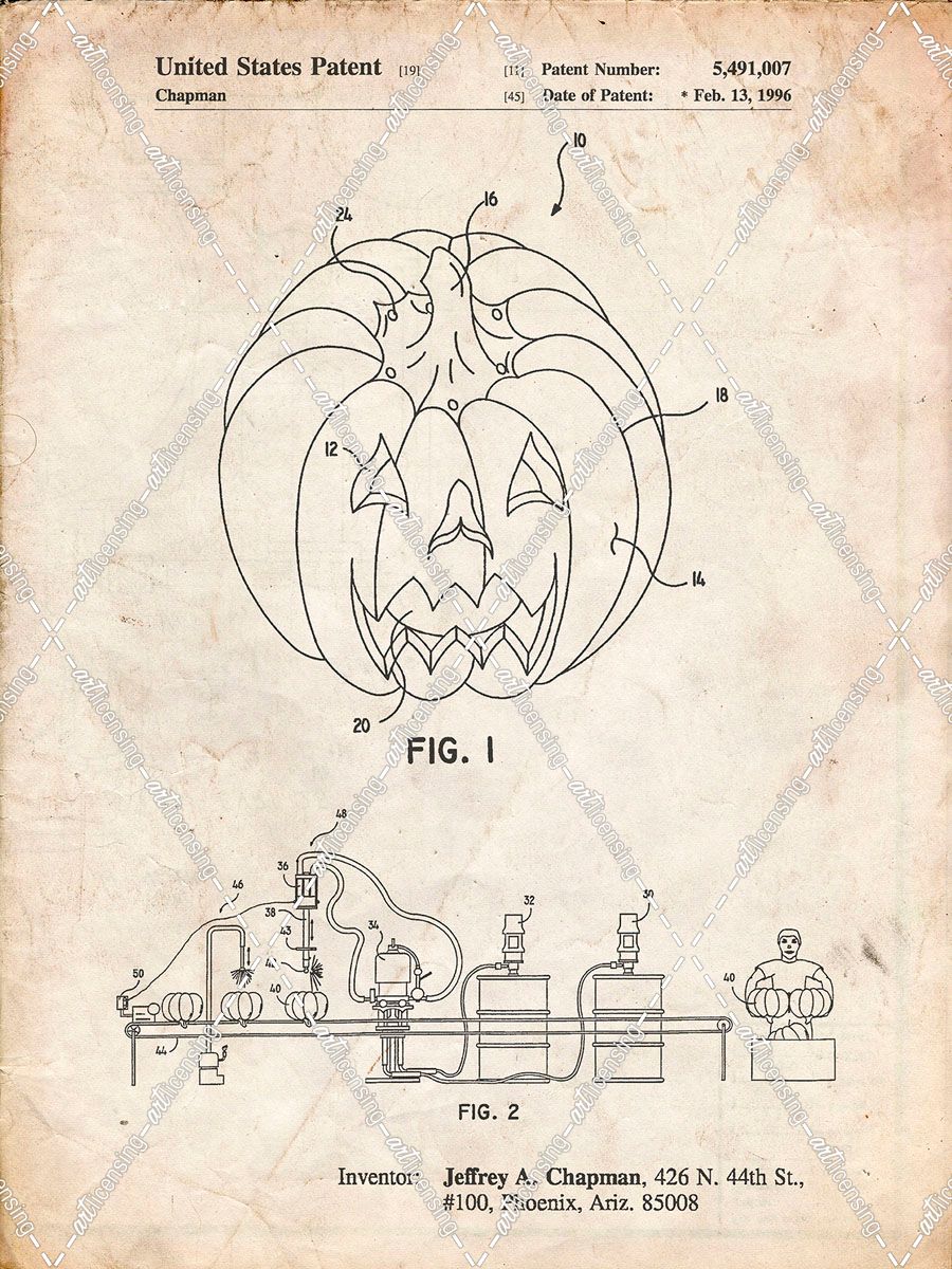 PP1003-Vintage Parchment Pumpkin Patent Poster