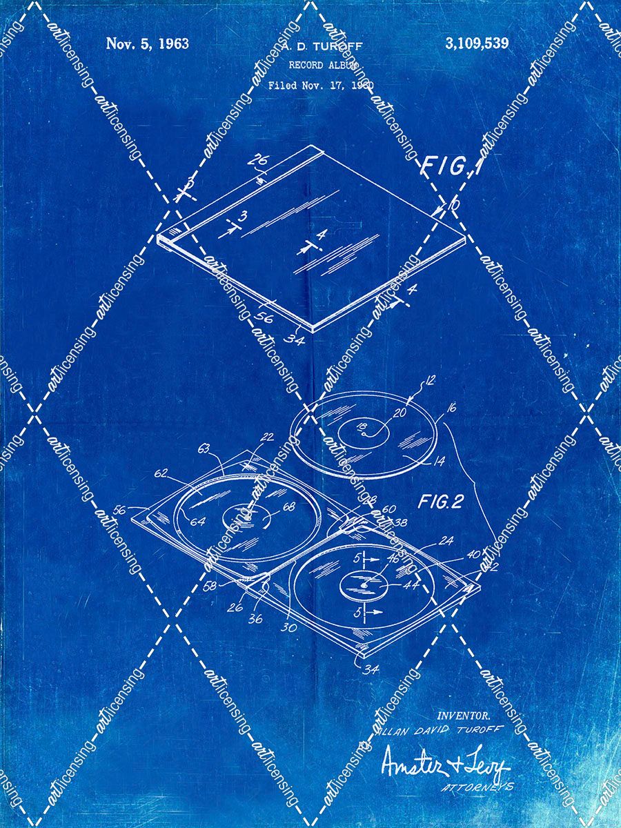 PP1008-Faded Blueprint Record Album Patent Poster