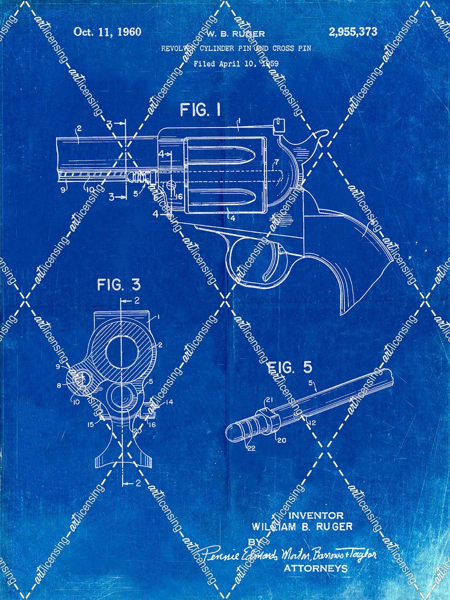 PP1023-Faded Blueprint Ruger Revolver Patent Art