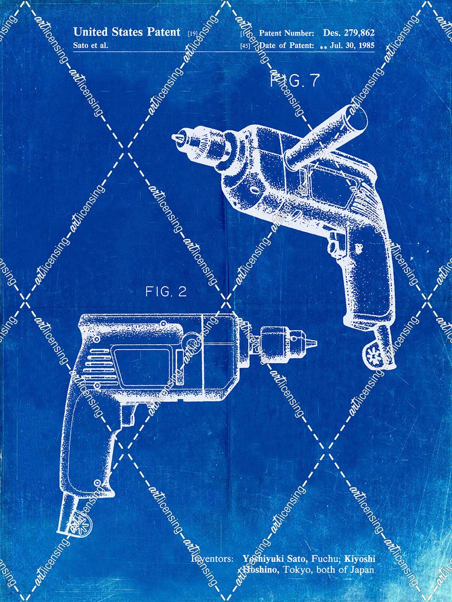 PP1024-Faded Blueprint Ryobi Electric Drill Patent Poster