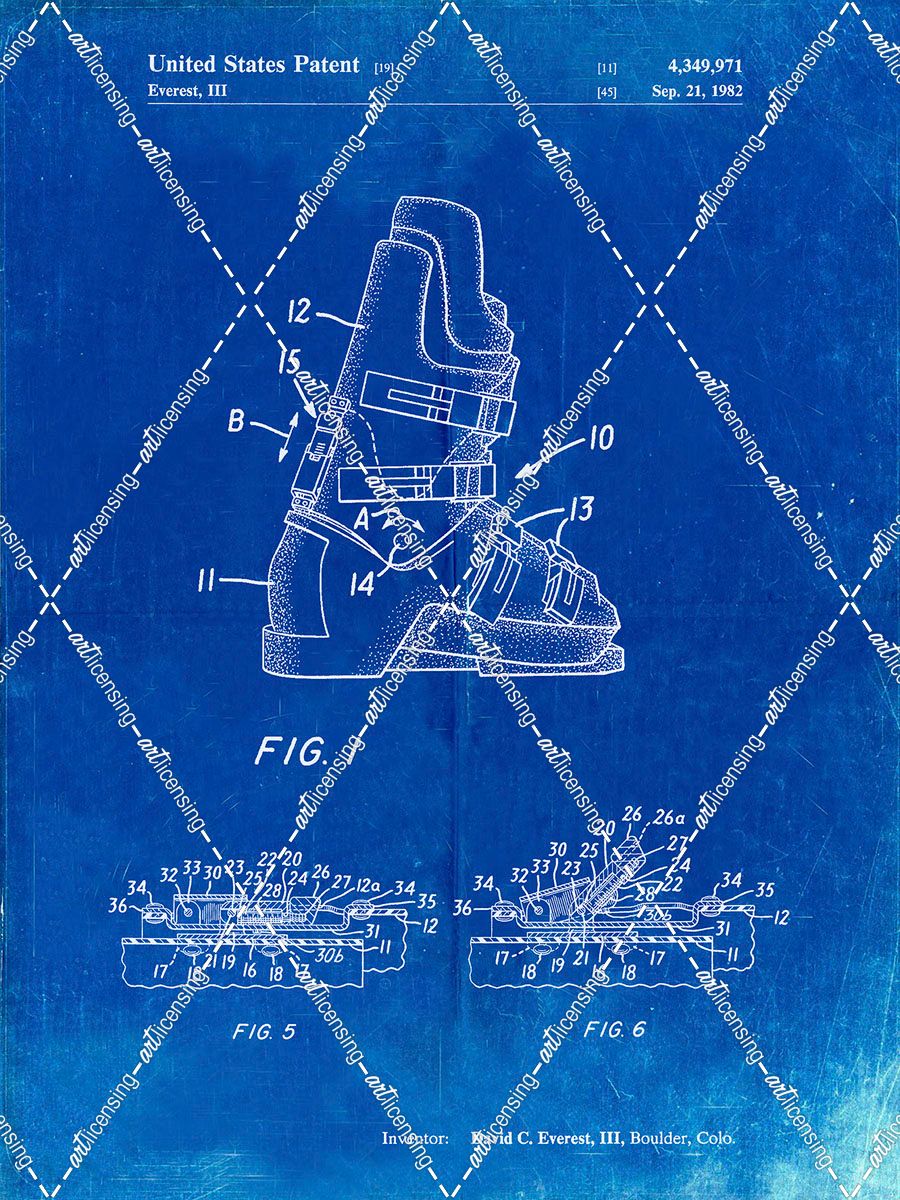 PP1037-Faded Blueprint Ski Boots Patent Poster