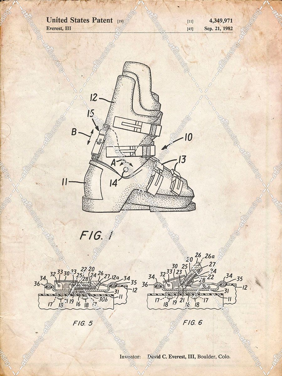 PP1037-Vintage Parchment Ski Boots Patent Poster