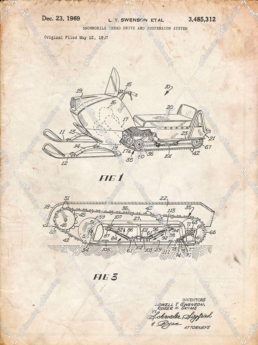 PP1046-Vintage Parchment Snow Mobile Patent Poster