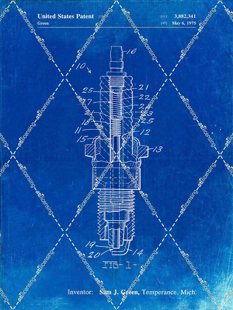 PP1051-Faded Blueprint Spark Plug Patent Poster