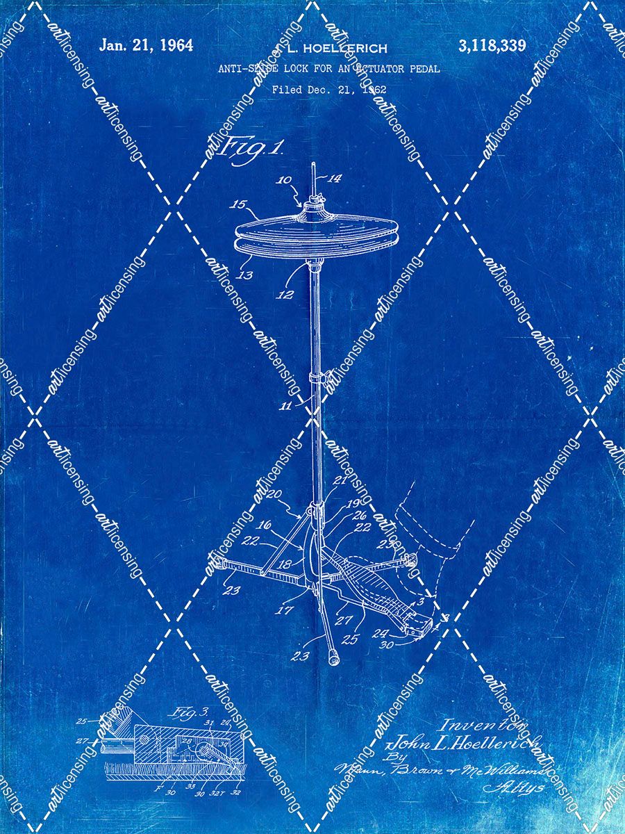 PP106-Faded Blueprint Hi Hat Cymbal Stand and Pedal Patent Poster