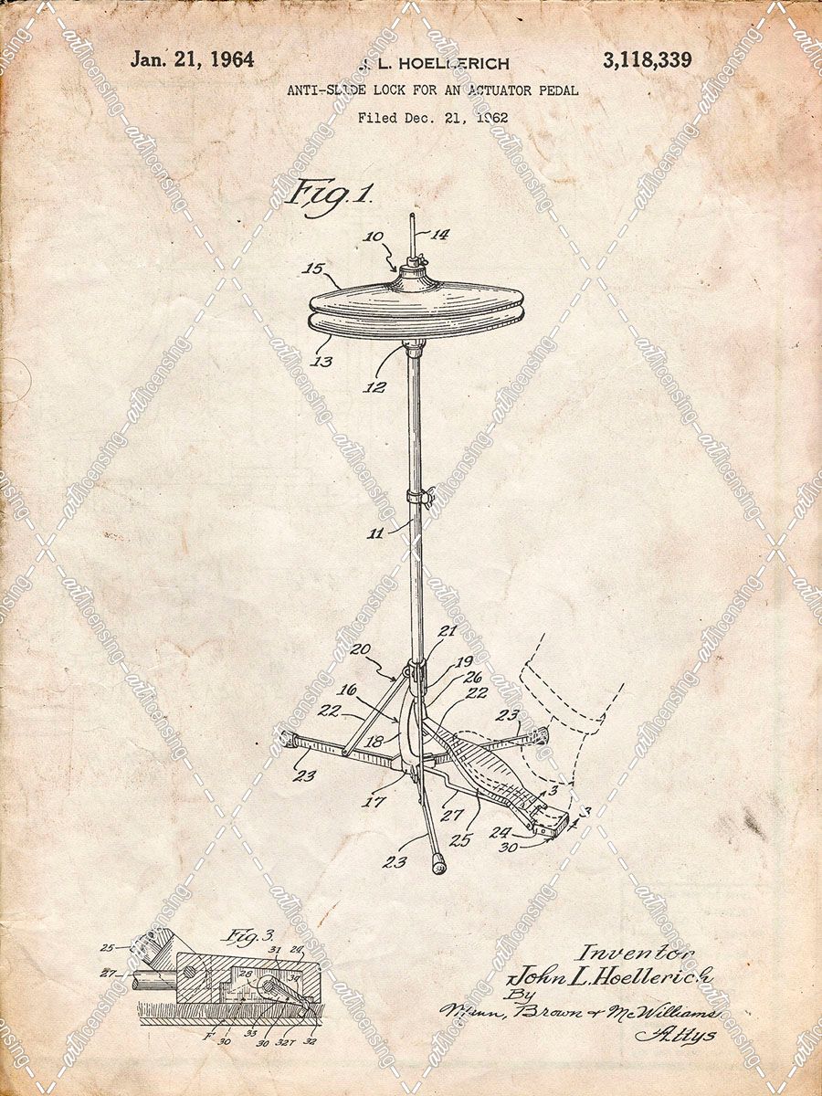 PP106-Vintage Parchment Hi Hat Cymbal Stand and Pedal Patent Poster