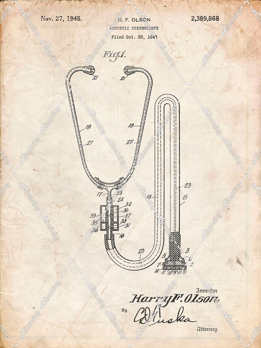 PP1066-Vintage Parchment Stethoscope Patent Poster