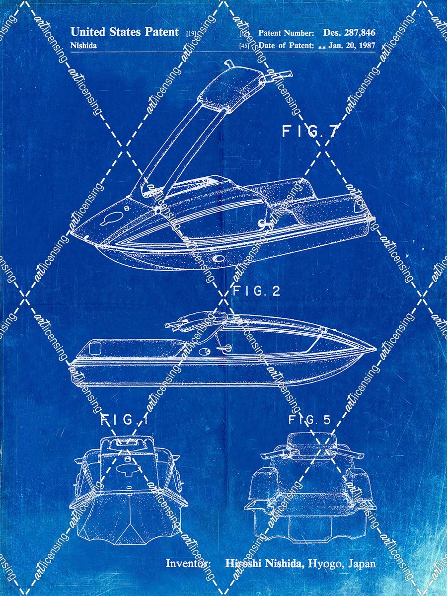 PP1076-Faded Blueprint Suzuki Jet Ski Patent Poster
