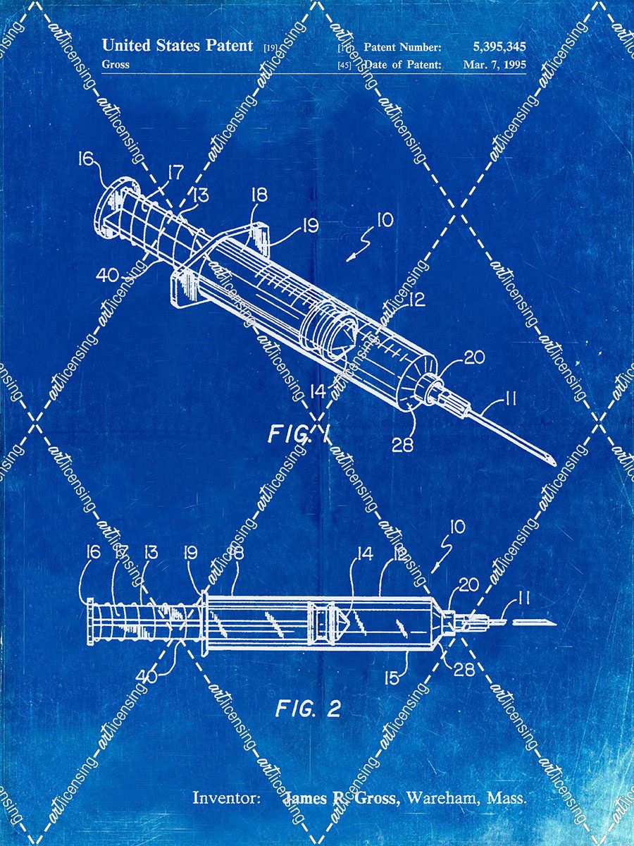 PP1080-Faded Blueprint Syringe Patent Poster