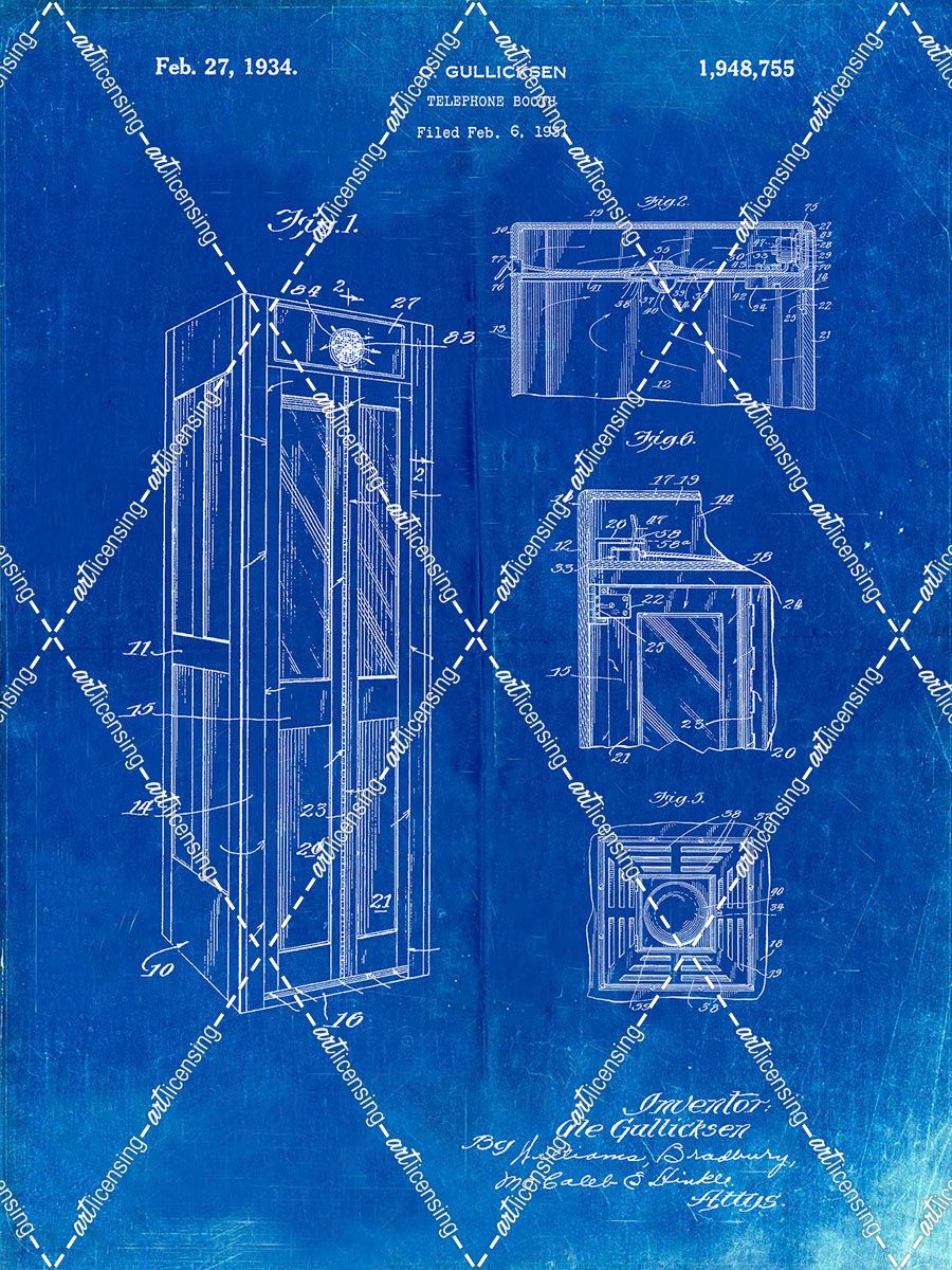 PP1088-Faded Blueprint Telephone Booth Patent Poster