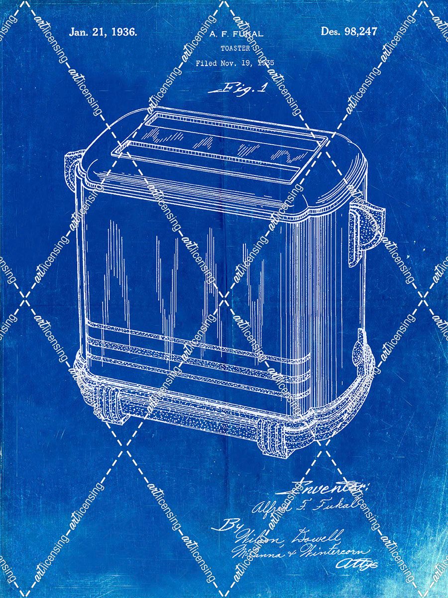 PP1100-Faded Blueprint Toaster Patent Art, Vintage Toaster
