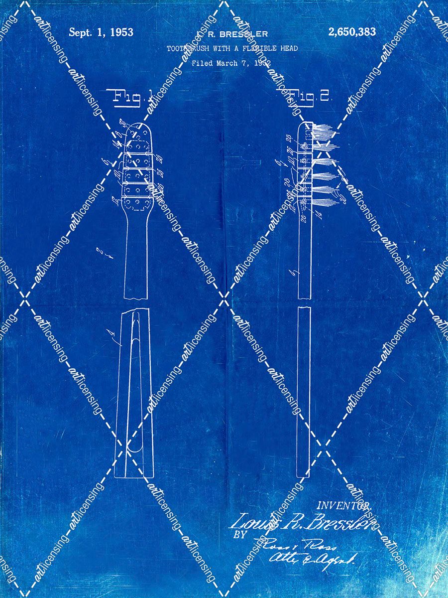 PP1102-Faded Blueprint Toothbrush Flexible Head Patent Poster