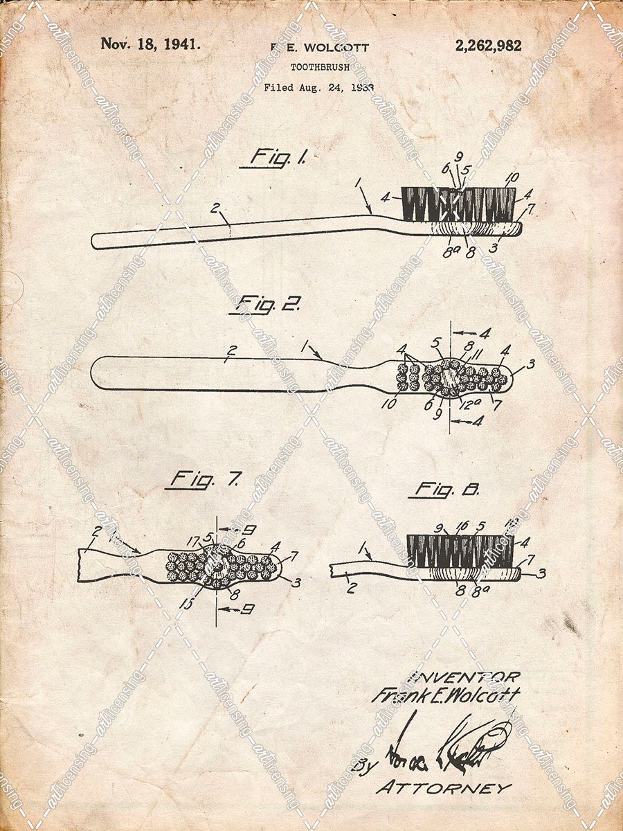 PP1103-Vintage Parchment Toothbrush Flexible Head Patent Poster